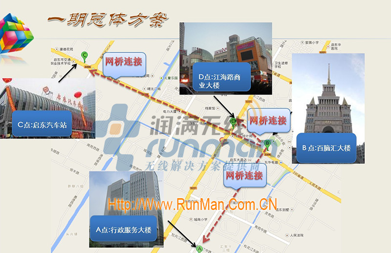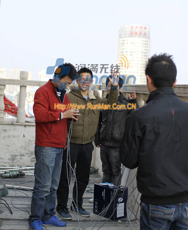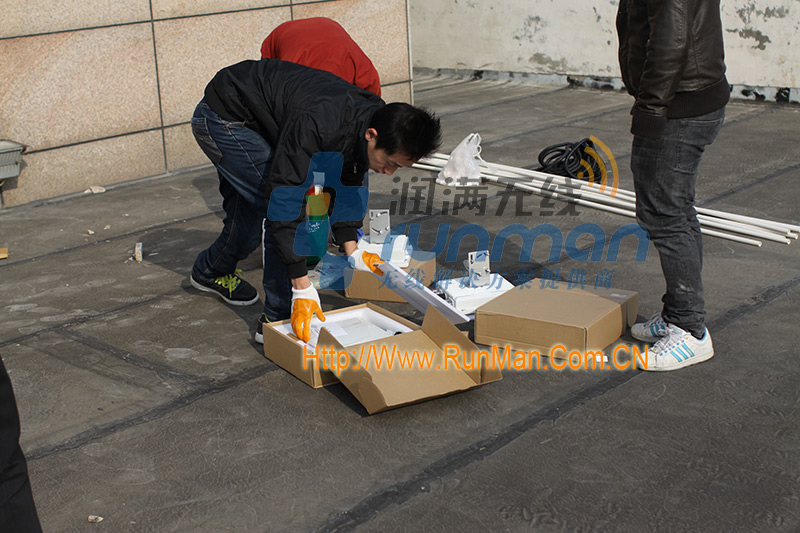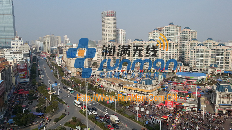 經過前期調研和實地勘察,決定采用漢明2000NRDW 室外雙頻AP和howay 3000NRQA 無線網橋,外接旌泓2.4G和5.8G高增益天線,在啟東百老匯樓頂放置網橋和室外AP,對整體進行無線覆蓋。