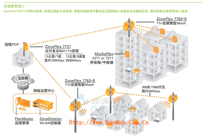 先進的智能Wi-Fi設計結合同步802.11n無線技術,能夠為距離600米以上的mesh網節點提供150Mbps的穩定吞吐量,為300米以外的客戶端提供50Mbps的穩定吞吐量。